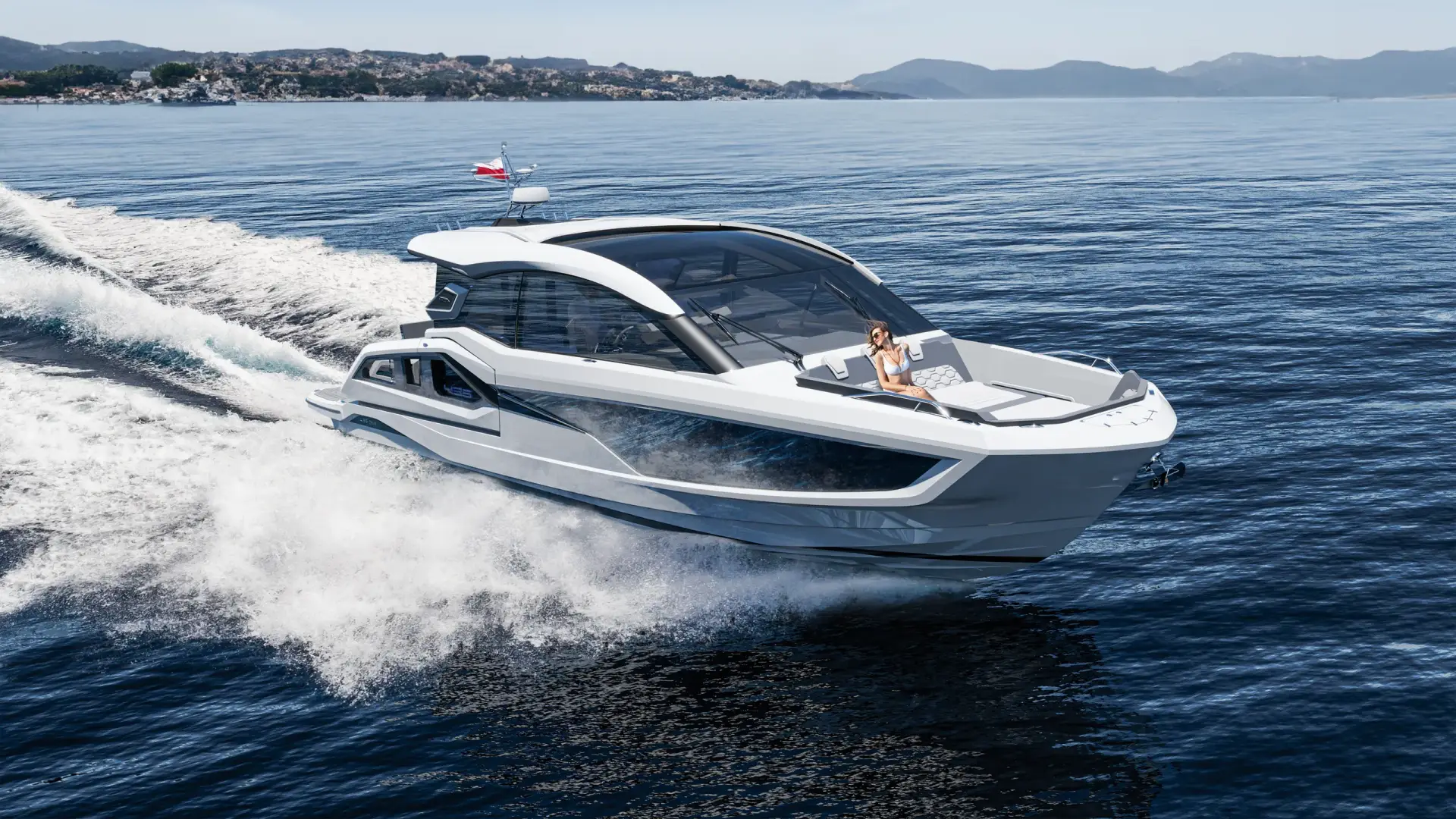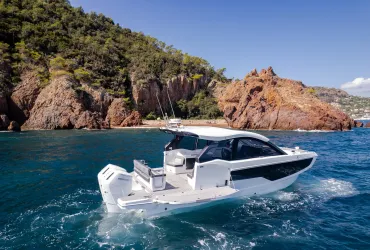 The Galeon 435 GTI is a bold evolution of Galeon’s grand touring concept—an inboard-powered day cruiser that combines sleek, sporty aesthetics with practical, high-performance features. With its aggressive silhouette, panoramic glazing, and climate-controlled wheelhouse, this yacht delivers comfort and control in every condition.